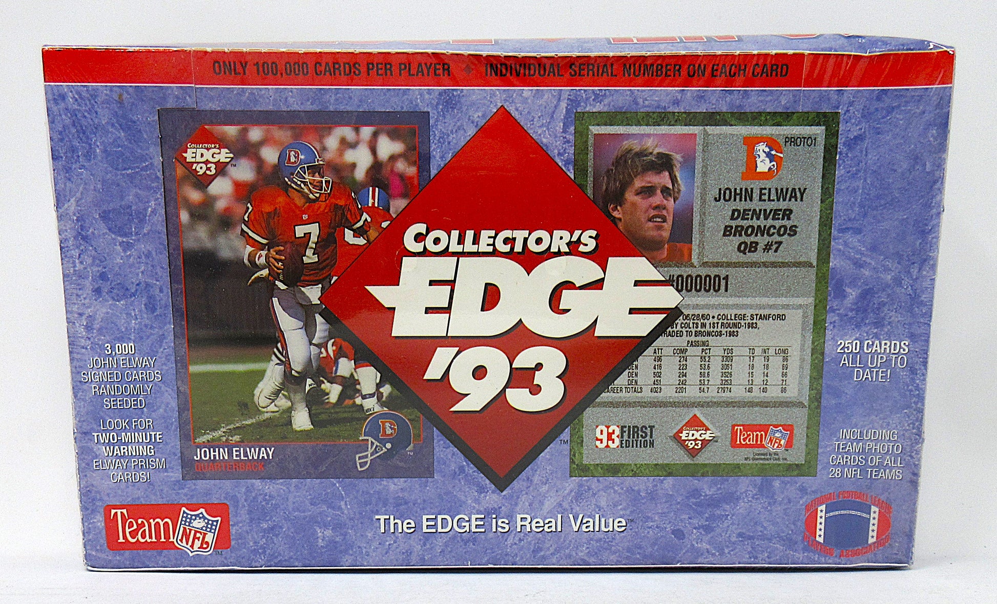 1993 Collectors Edge Football Box. Each box contains (24) packs, with (6) cards.