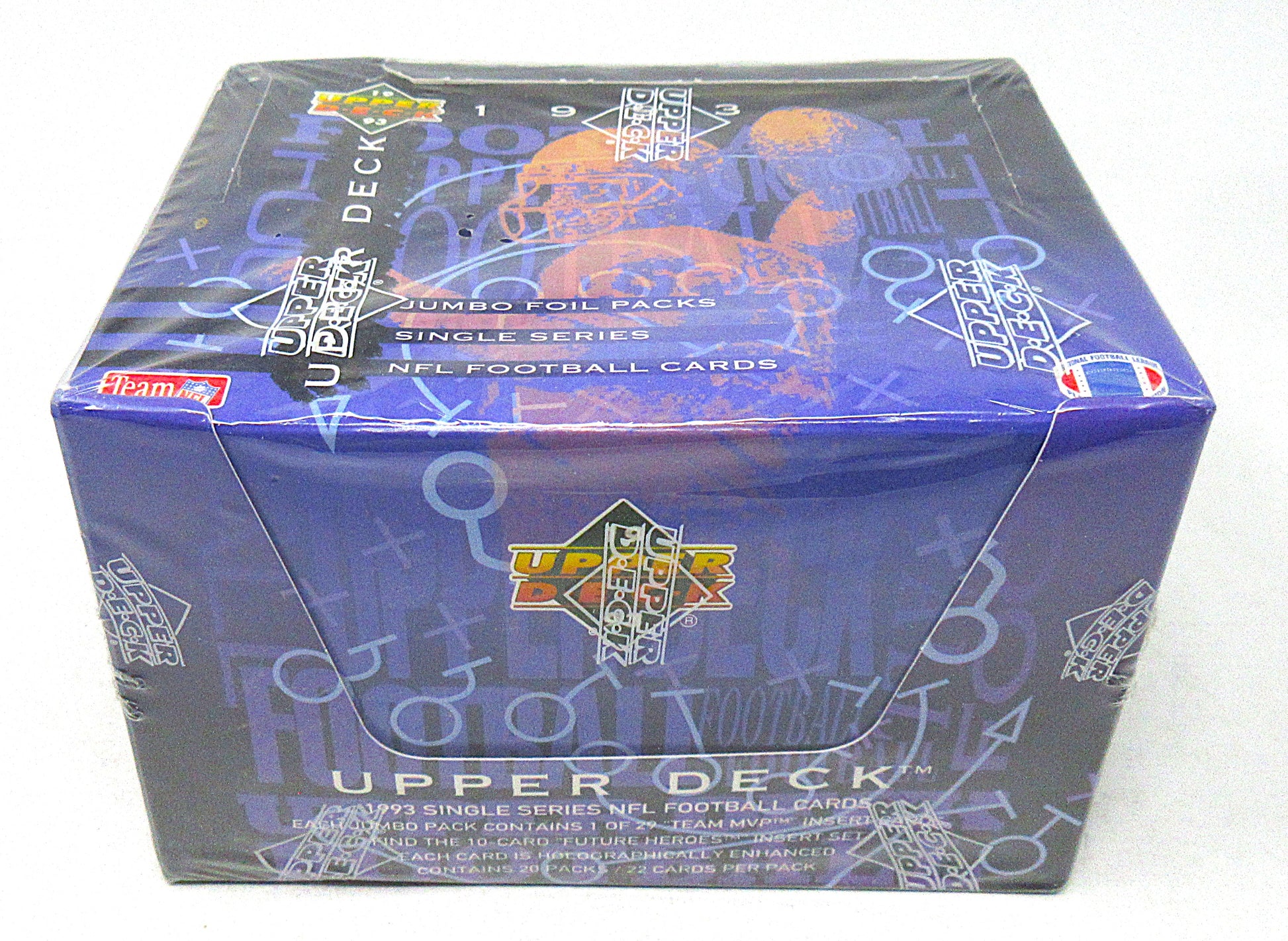 1993 Upper Deck Football Jumbo Box (20/22). This box contains (20) Jumbo packs, each with (22) cards.