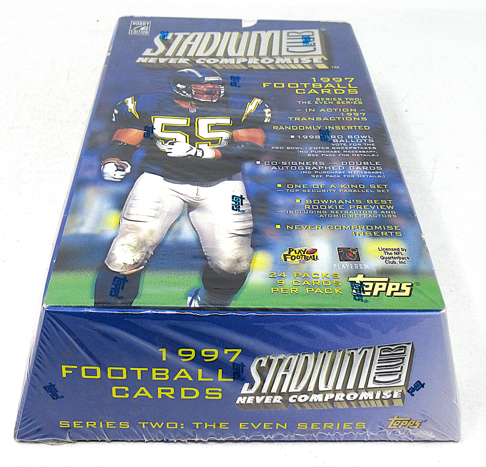 1997 Topps Stadium Club Football Series 2 Box (Evens) (Hobby) (24/9). This hobby box contains (24) packs, each with (9) cards.