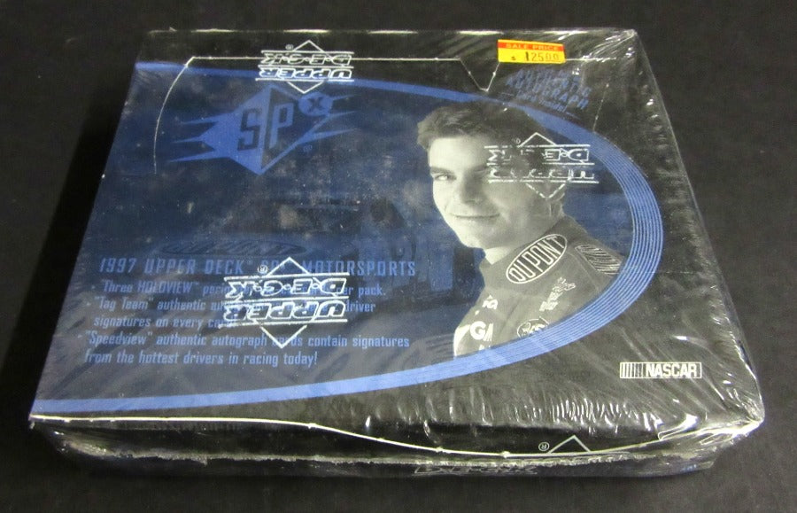 1997 Upper Deck SPX Racing Race Cards Box. This box contains (24) unopened packs, each with (1) cards per pack.