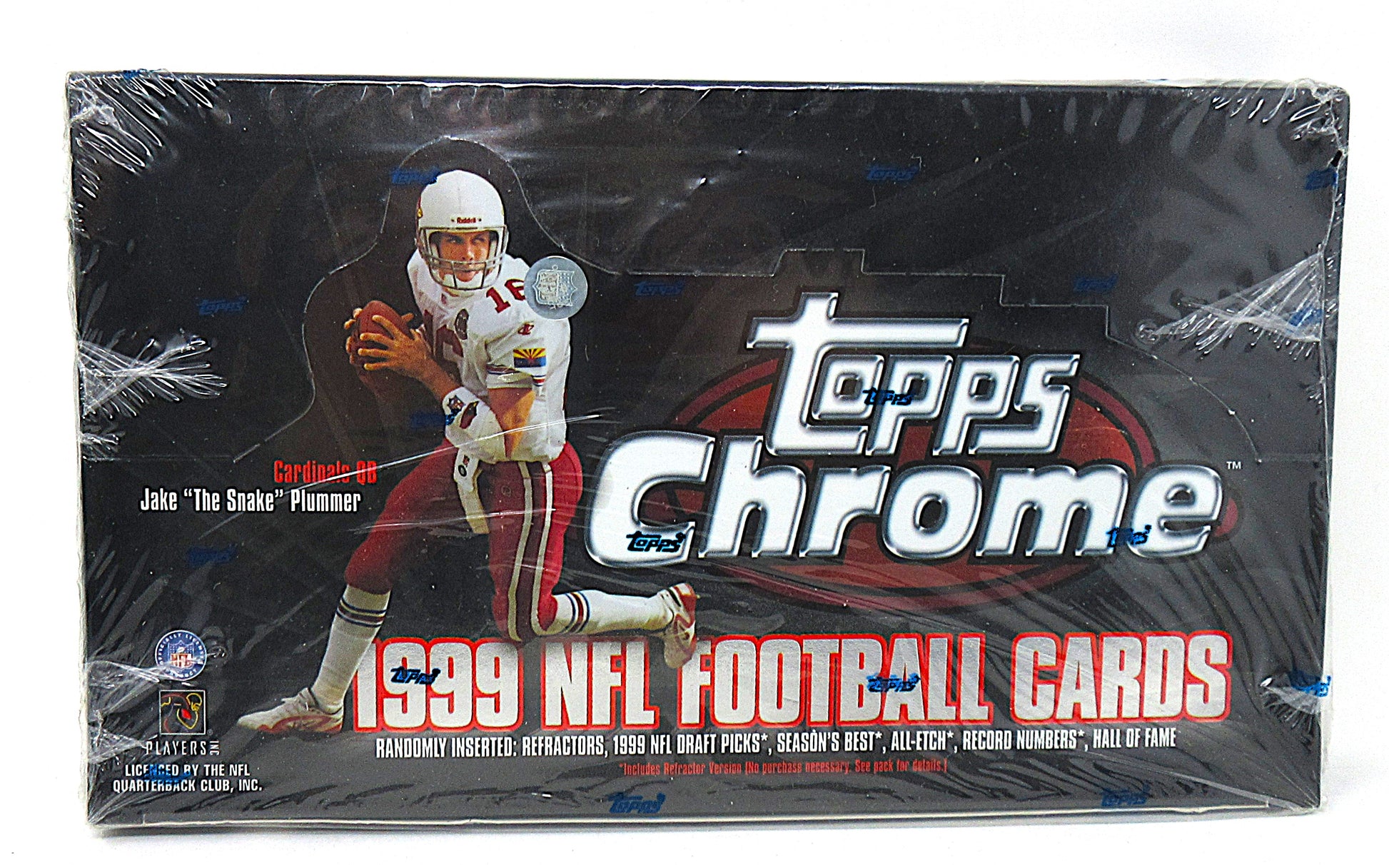 1999 Topps Chrome Football Box (Retail). This Retail box contains (24) packs, each with (4) cards.