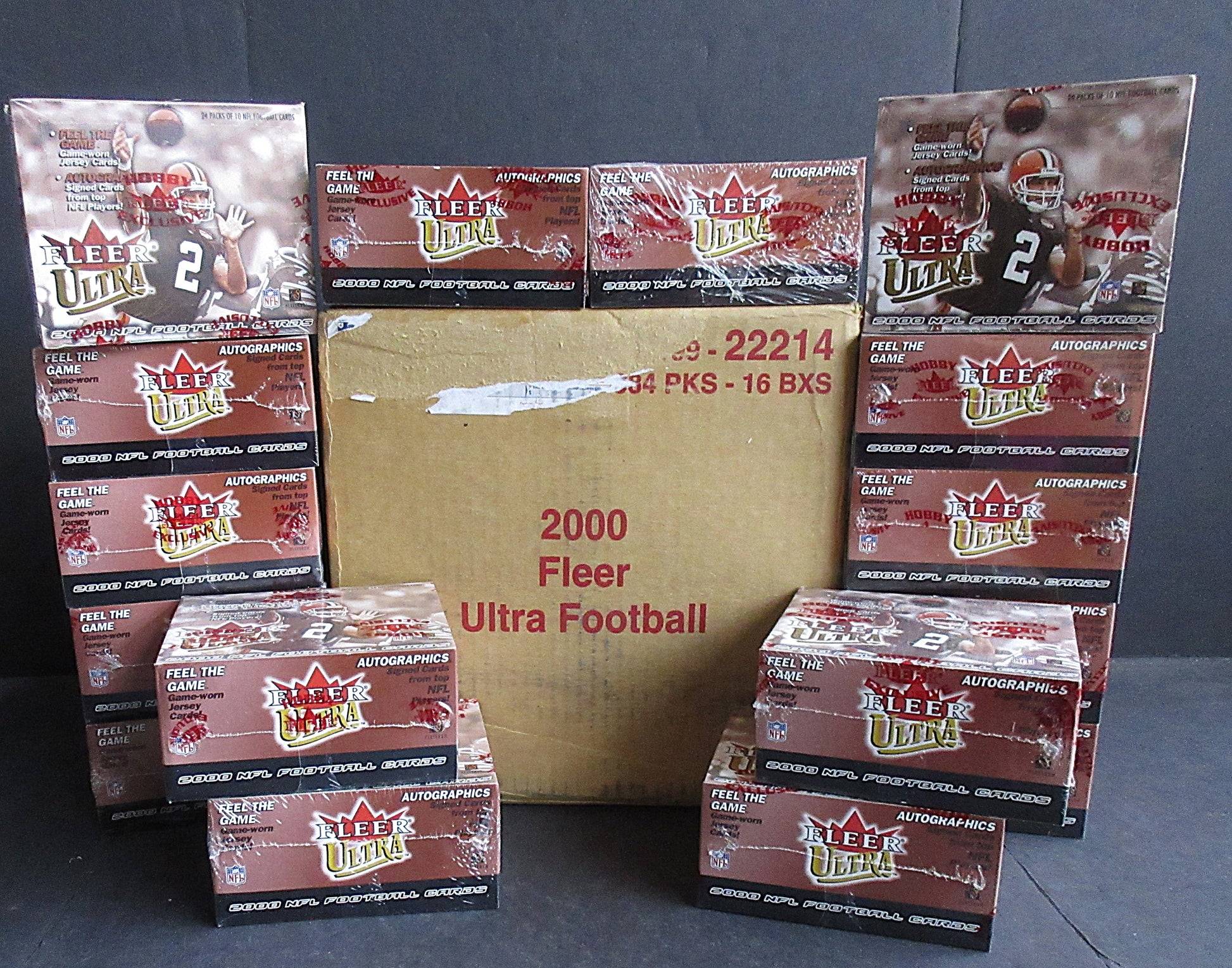 2000 Fleer Ultra Football Case (Hobby) (16). This case contains (16) Factory Sealed Hobby boxes.