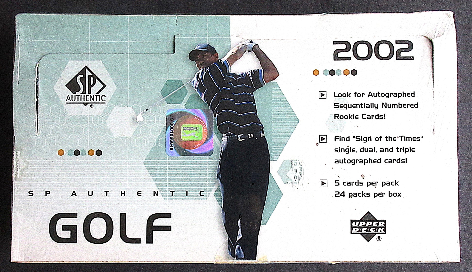 2002 Upper Deck SP Authentic Golf Box (Hobby) (24/5). This Hobby box contains (24) packs, each with (5) cards. Look for (2) Autographs per box (on average).