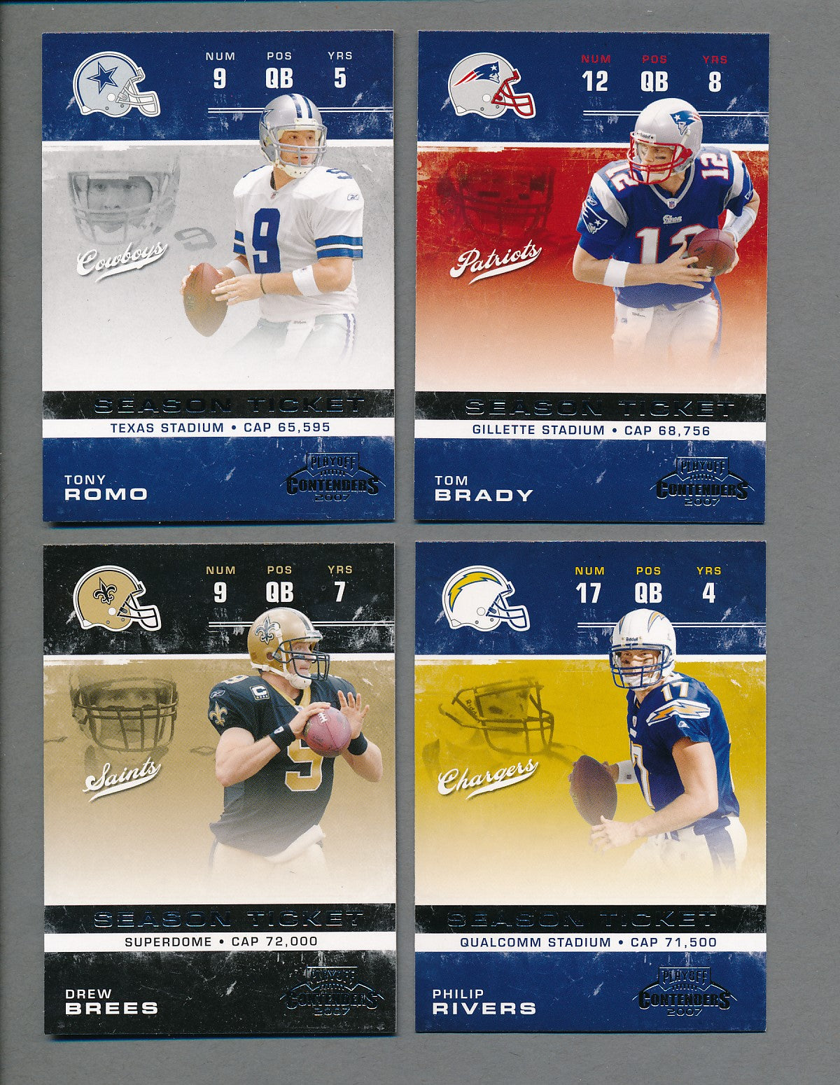 2007 Playoff Contenders Football Complete Set. This complete set contains (100) cards. The overall condition of this set averages NM/MT to MINT.