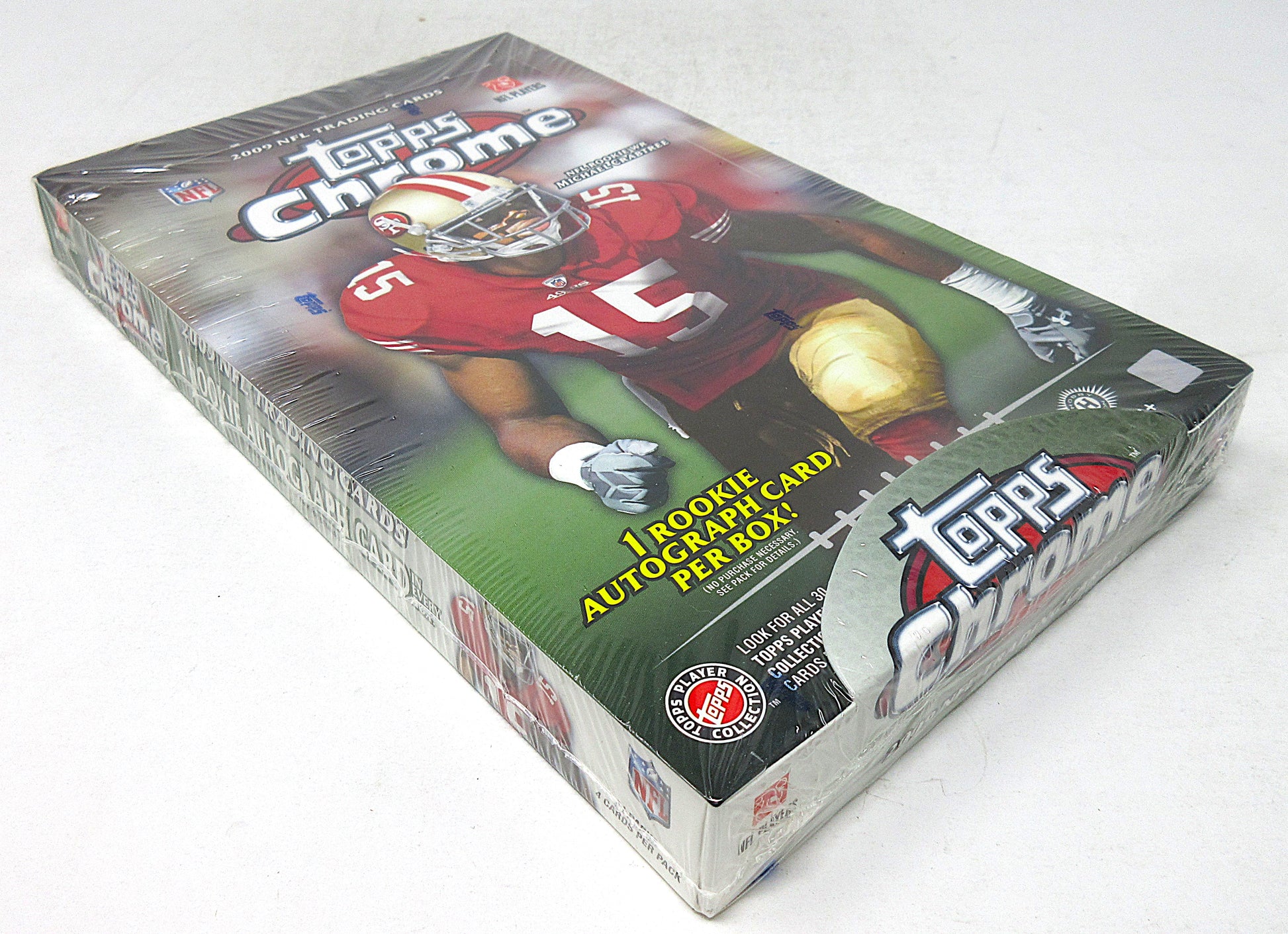 2009 Topps Chrome Football Box (Hobby). This Hobby box contains (24) packs, each with (4) cards. Look for (1) Autographed Rookie card per box (on average).