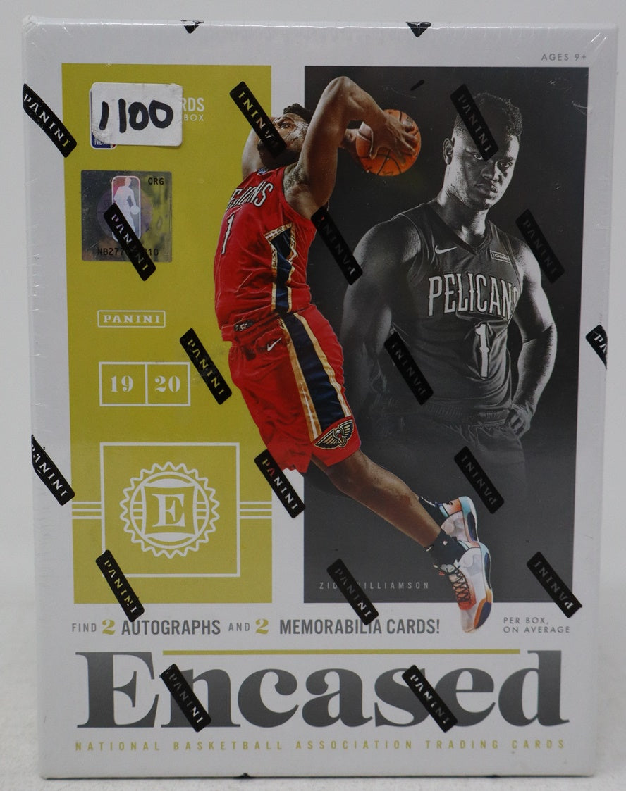 2019/20 Panini Encased Basketball Box (5). This box contains (5) cards, including (2) Autographs, with (1) being a graded card. The box also contains (2) Memorabilia cards.