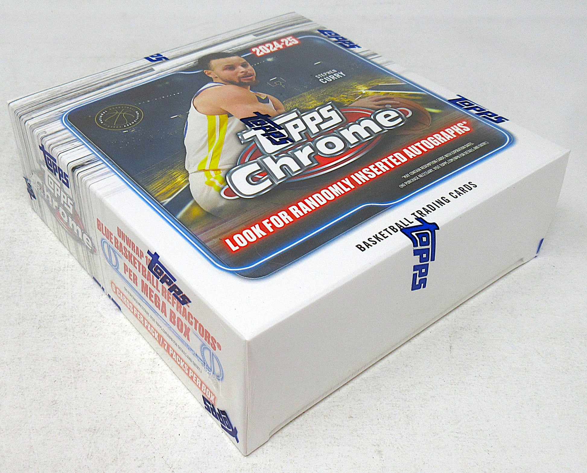 2024/25 Topps Chrome Basketball Mega Box (7/6). This Mega box contains (7) packs, each with (6) cards. Look for randomly inserted Autographs.