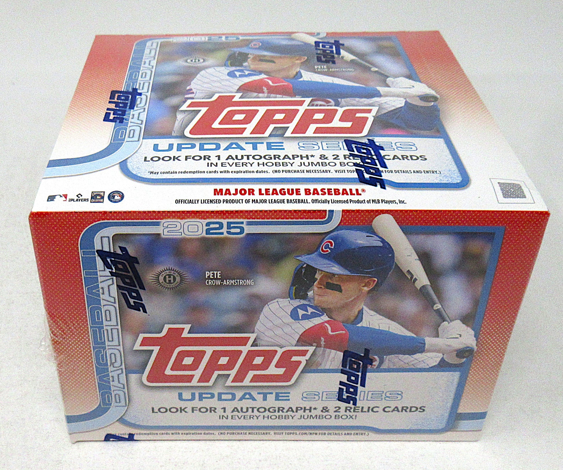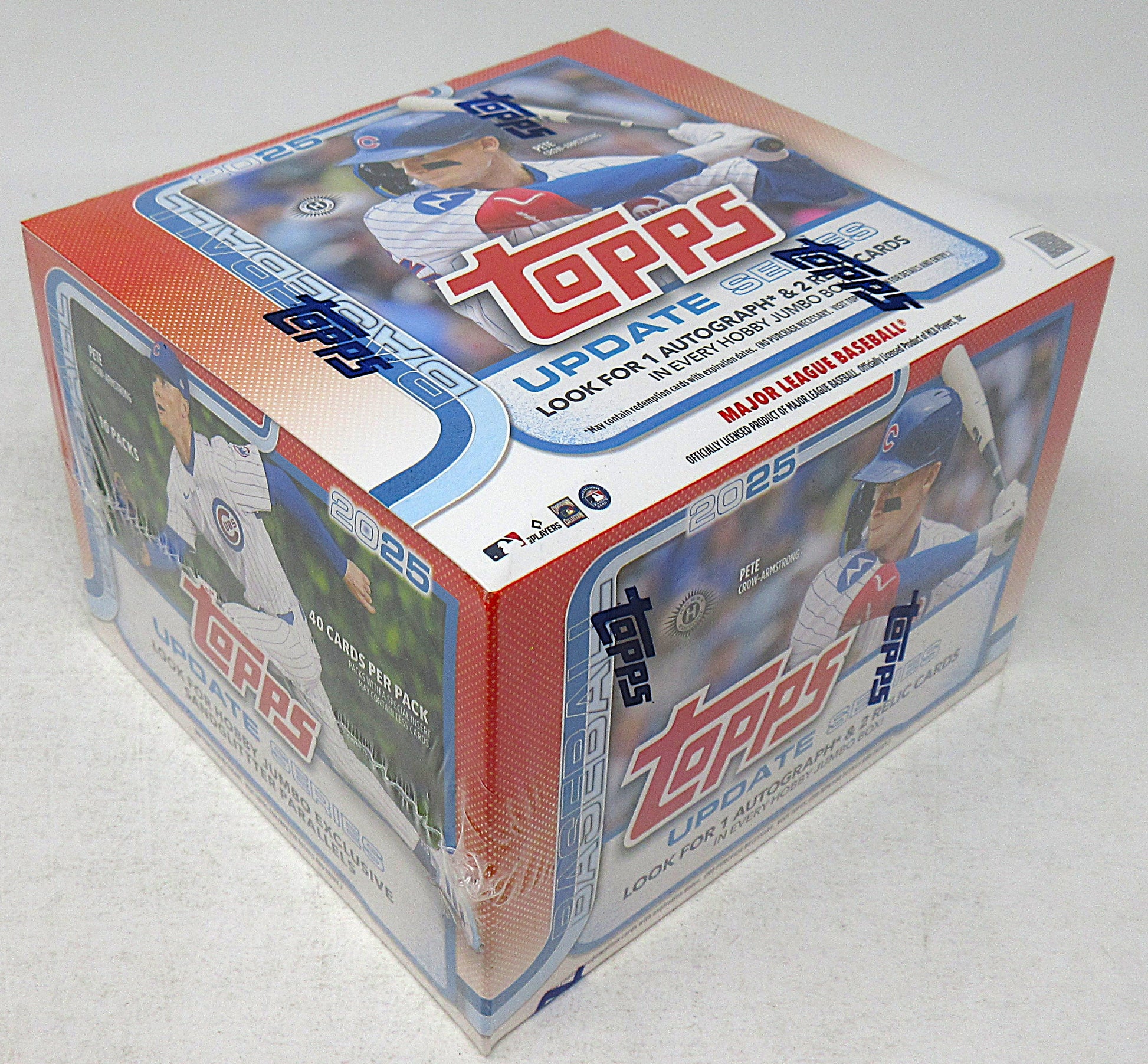 2025 Topps Baseball Update Series Jumbo Box (Hobby) (10/40). This Hobby box contains (10) Jumbo packs, each with (40) cards. Look for (1) Autograph and (2) Relic cards per box (on average).