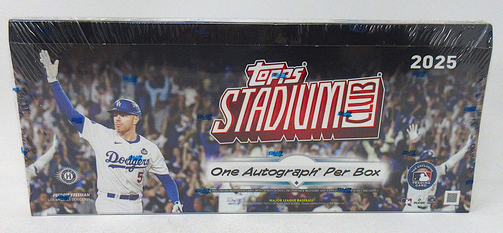 2025 Topps Stadium Club Baseball Box (Hobby) (16/8). This Hobby box contains (16) packs, each with (8) cards. Look for (1) Autograph, (16) Base Red Parallel cards, (8) Insert cards, and (2) Bronze Parallel cards per box (on average).